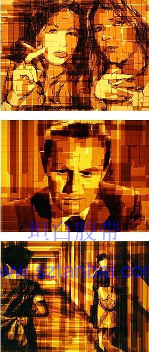 看到上面的畫作,除了色彩處理得不錯外,也許你不會再覺得有很吃驚的地方了,但如果告訴你,這些畫作全部都是用封箱膠帶完成的呢,你還會覺得這是普通的畫作嗎?